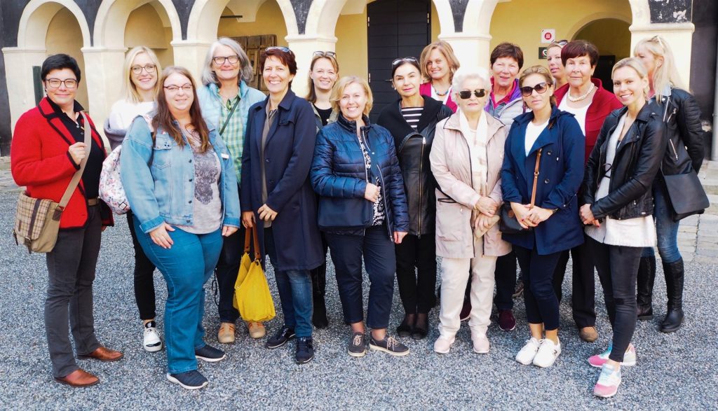 Nach der Maribor-Visite des Soroptimist Aquin Club Fürstenfeld im Mai diesen Jahres, fand am Sonntag, dem 20. Oktober 2019 der Gegenbesuch von sieben Damen des SI Clubs Maribor statt. Treffpunkt war im Clublokal „Fürstenbräu“ bei Kaffee und Kuchen und schönstem Wetter. Als ersten Programmpunkt stand die Besichtigung der Pfeilburg und des Museums auf dem Programm, gefolgt von einer hochinteressanten Stadtführung durch Josef Rauscher von der Stadtgemeinde Fürstenfeld. Nach einer köstlichen Mittags-Stärkung im „Fürstenbräu“, wo die Freundschaft durch anregende Gespräche vertieft werden konnte, ging es weiter mit dem Nachmittagsprogramm im Künstlerdorf Neumarkt an der Raab. Leiterin und Neo-Expräsidentin Petra Werkovits führte die Damen mit viel kreativer Energie durch das Dorf und stellte u.a. die ehrwürdige Tradition des Kunstdrucks vor. Mit einer zünftigen Jause aus regionalen Spezialitäten klang dieser mit unvergesslichen Eindrücken gefüllte Tag gemütlich aus.