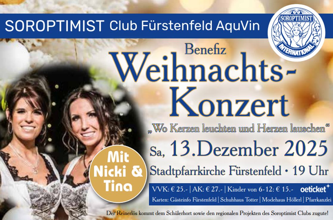 Mamamia Fürstenfeld Stadt-Zug-Platz 3, Fürstenfeld, Austria🎁 GESCHENKE VERSTEIGERUNG – Bieten, Helfen, Gutes tun! 🎁 📅 Donnerstag, 6. November 2025 🕡 Beginn: 18:30 Uhr 📍 MAMAMIA, Fürstenfeld 🎤 Moderation: Mario Delon Zu Weihnachten doppelt Freude bereiten! Bei der beliebten Geschenkeversteigerung des Soroptimist Clubs Fürstenfeld könnt ihr nicht nur tolle Geschenke ersteigern, sondern gleichzeitig Familien in Not und wichtige regionale Projekte wie „Respekt“ und „Leuchtturm“ unterstützen.… Weiterlesen »Geschenke Versteigerung